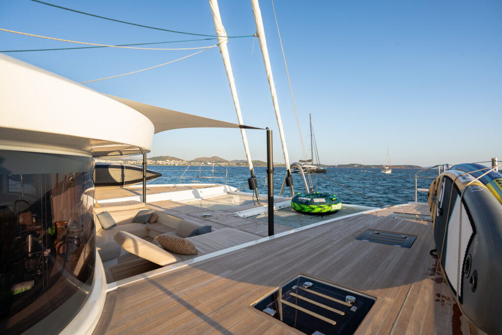 Her hull comes equipped with a carbon fiber boom, and a carbon mast is an option for our performance-focused owners. With smooth and easy handling, her sailing assets and performance underway are sure to meet the highest of expectations.